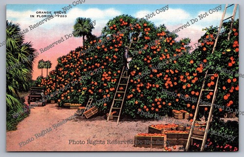 Vintage Postcard Orange Grove In Florida