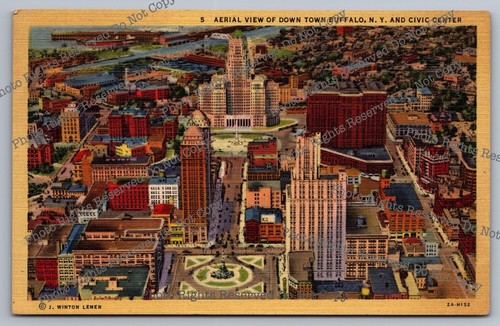 Vintage Postcard Aerial View Of Downtown Buffalo New York and Civic Center