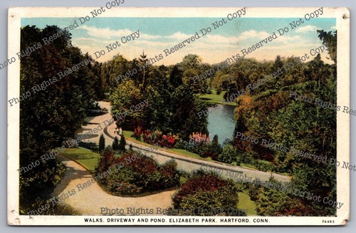 Antique Postcard Walks Driveway And Pond Elizabeth Park Hartford Connecticut